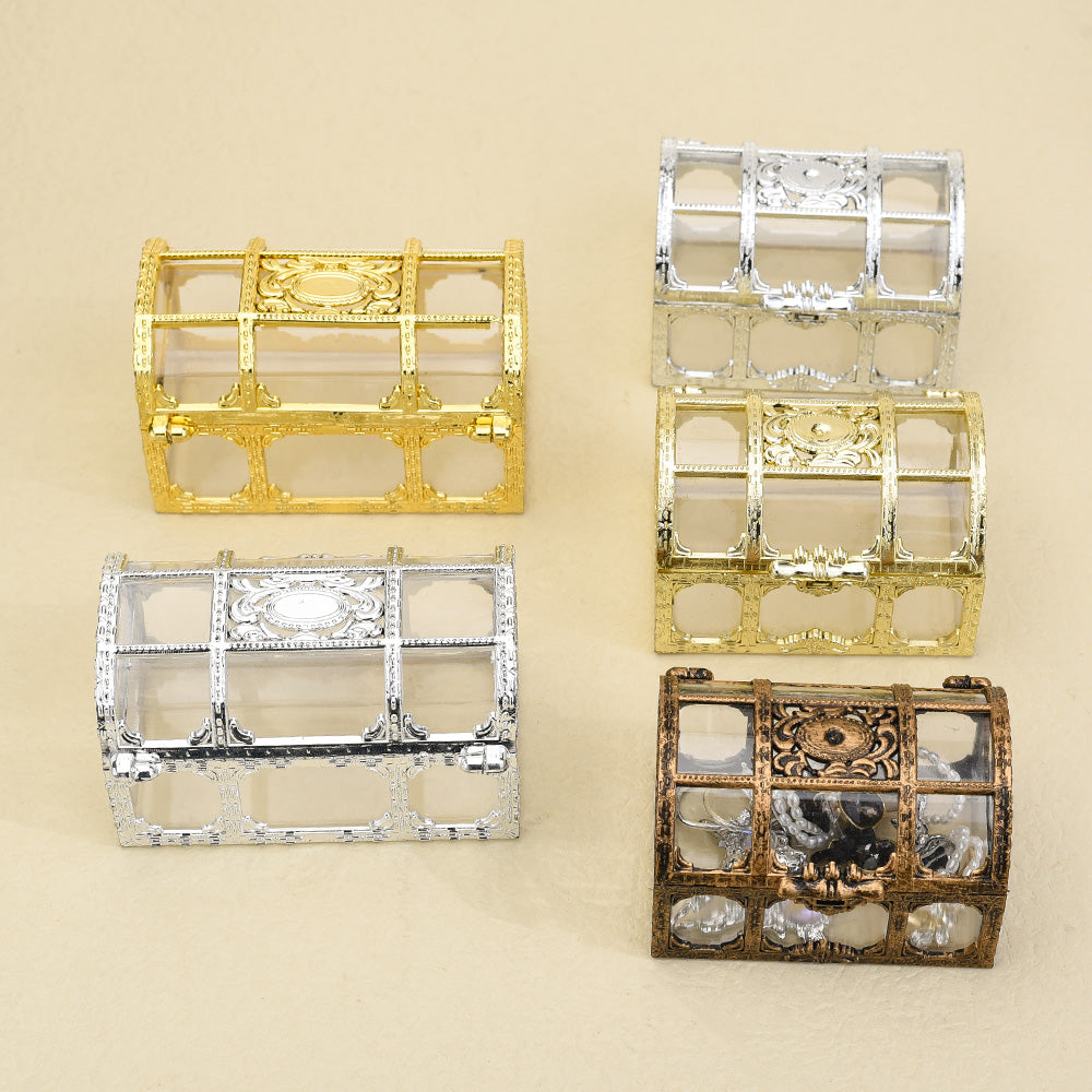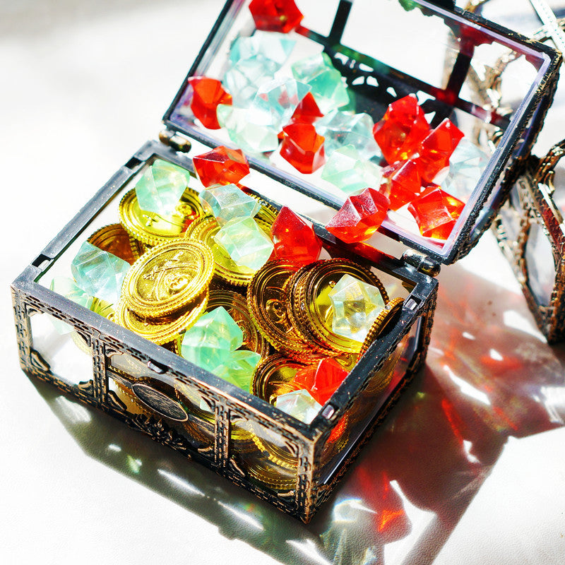 - Magnificent transparent treasure chest worthy of Blackbeard or Jack Sparrow available in three colors