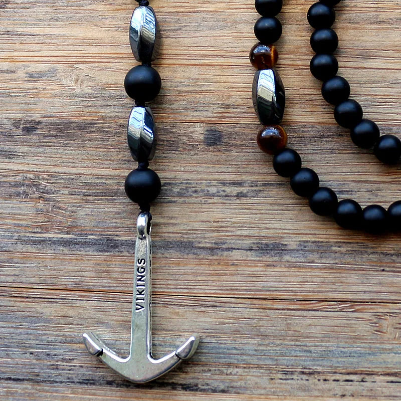 - Collier de 65 cm, ancre de 4 cm, perles de 6 mm, pour conquérir les sept mers