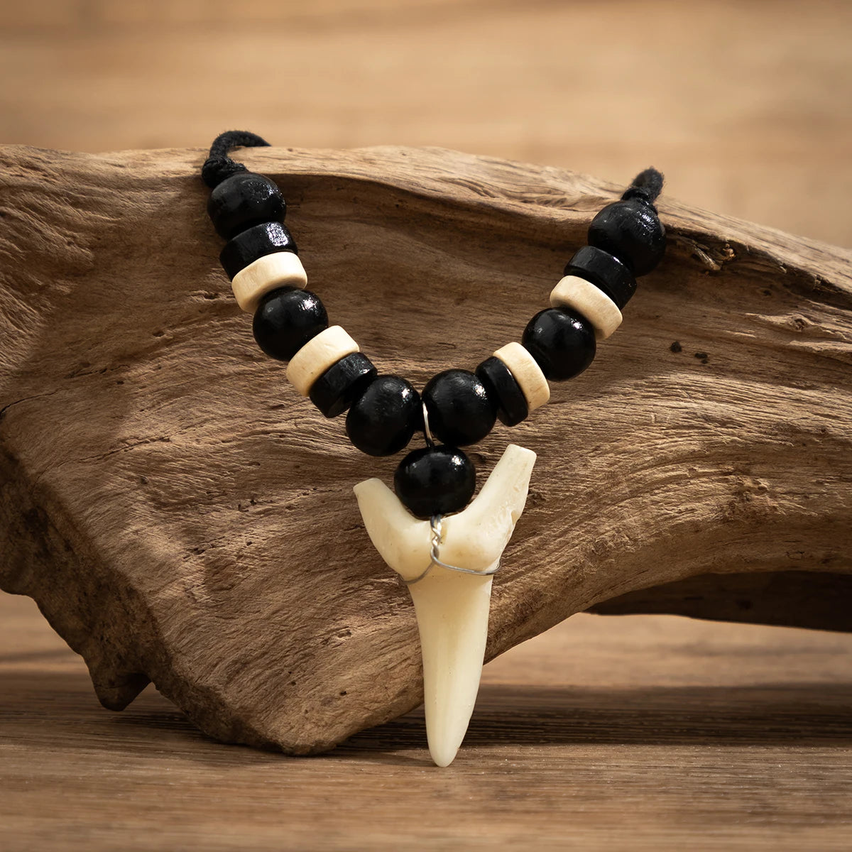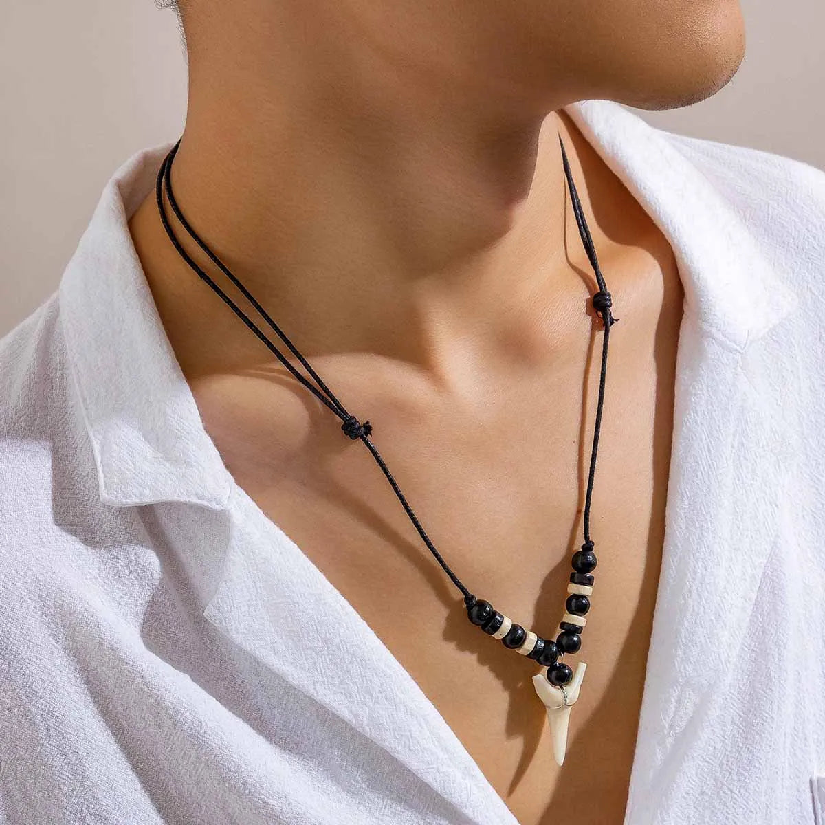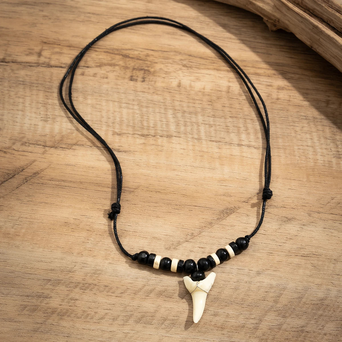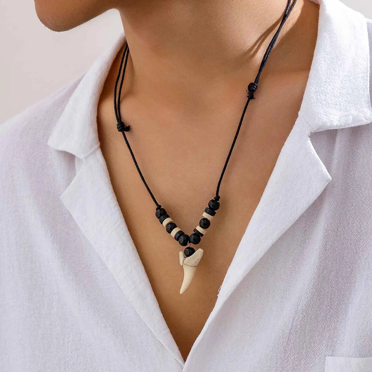 - Dent de requin en résine durable, avec perles authentiques et cordon style marin