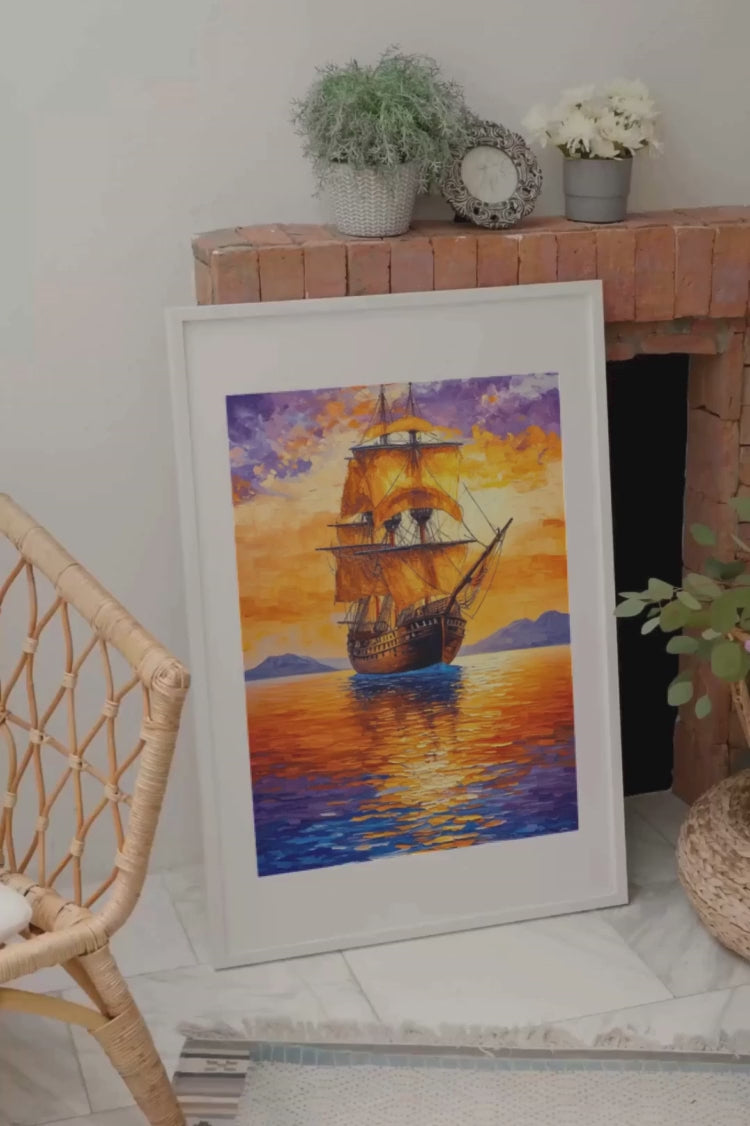 Par tous les vents, cette peinture acrylique bateau mer te transporte vers des horizons infinis, où chaque vague murmure les légendes des marins d'antan
