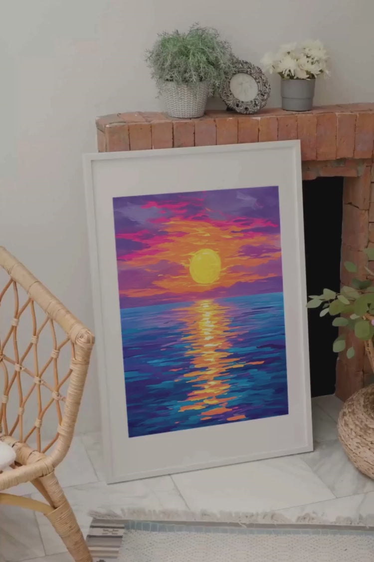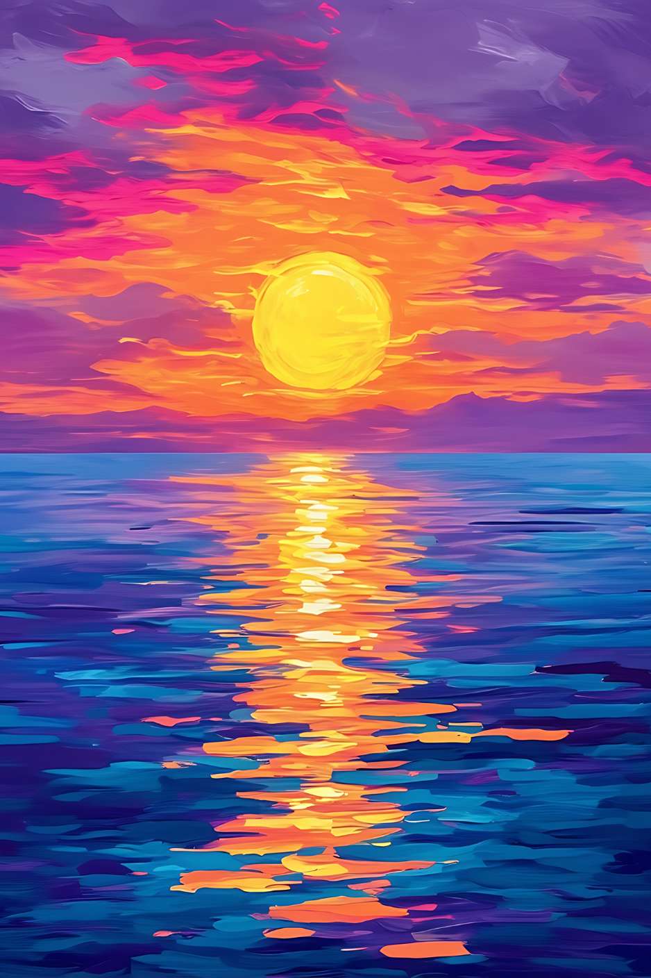 Cette peinture acrylique coucher de soleil sur la mer est si éclatante que même les sirènes des profondeurs émergent pour l'admirer