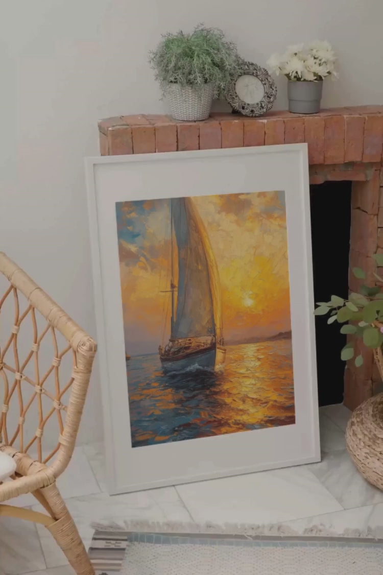 Arrimez vos cœurs à cette toile, moussaillons ! Ce tableau bateau peinture de coucher de soleil en mer vous fera voguer vers des horizons insoupçonnés