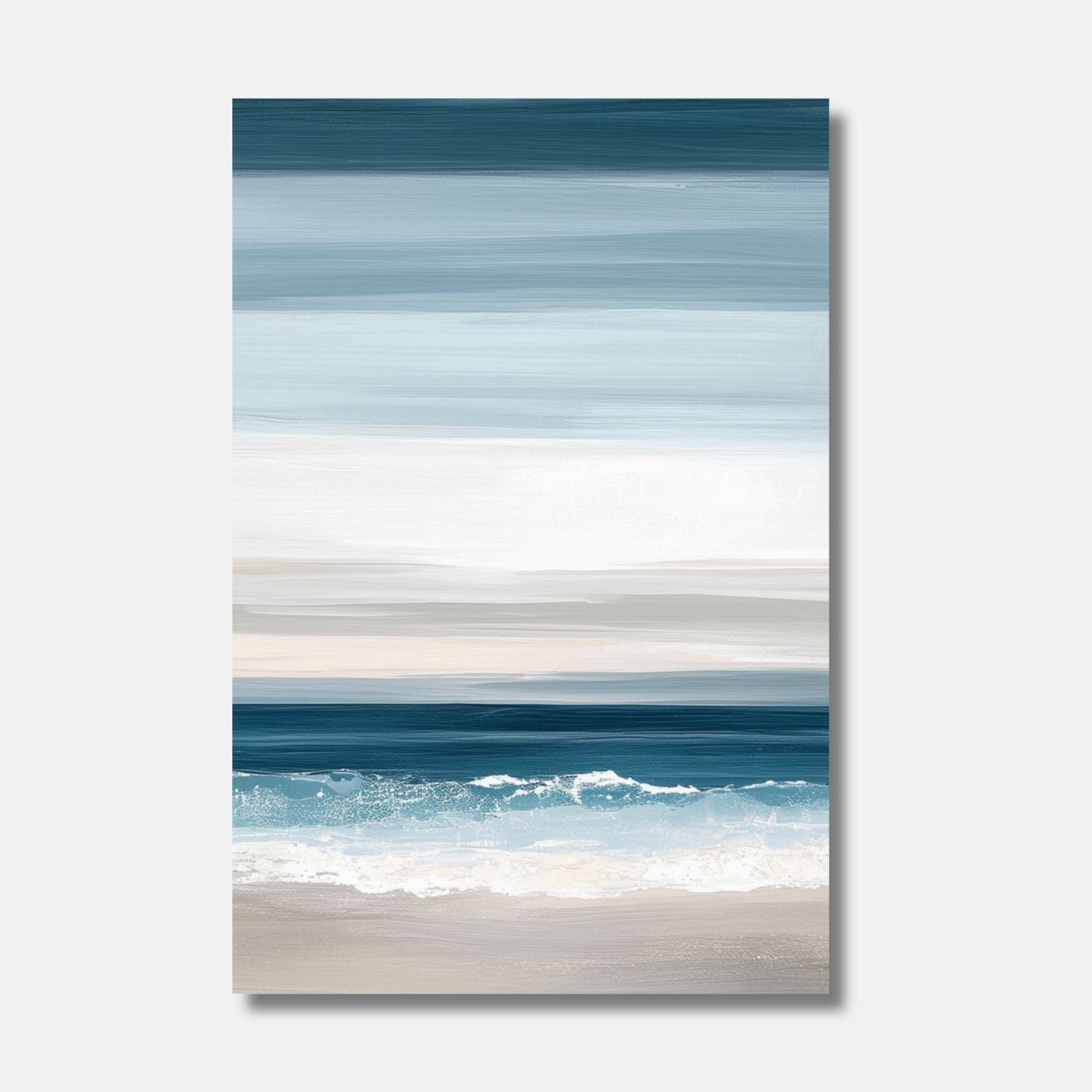 - L'essence du bord de mer avec des nuances de bleu et de blanc, créant une vue abstraite et apaisante des vagues se brisant doucement sur la plage