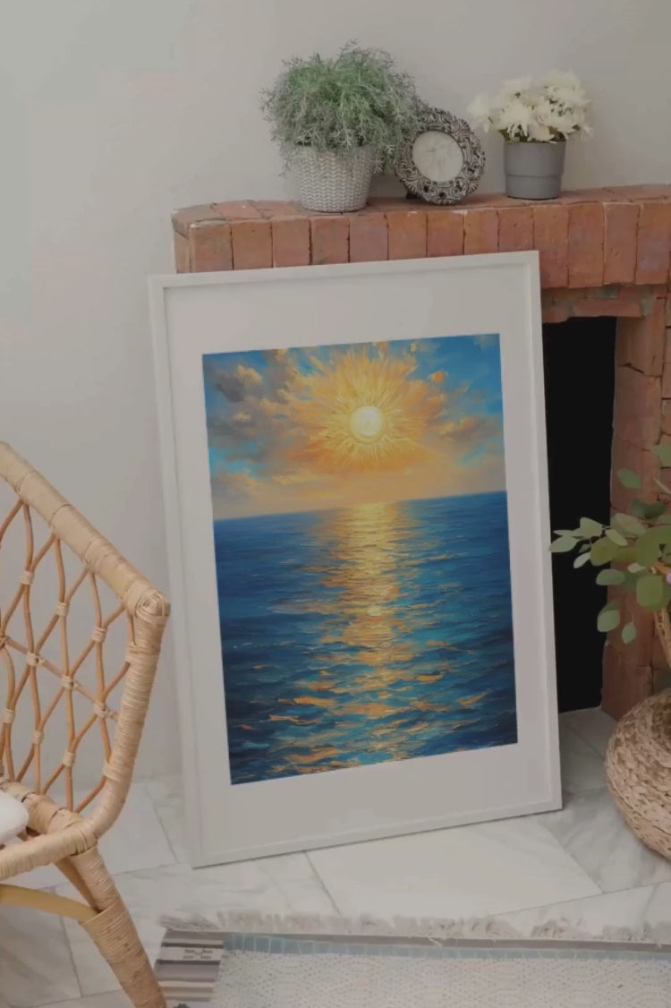 Par tous les vents et marées, ce tableau soleil enchanteur où le soleil embrase l'océan est la carte au trésor pour illuminer votre demeure d'une lueur divine