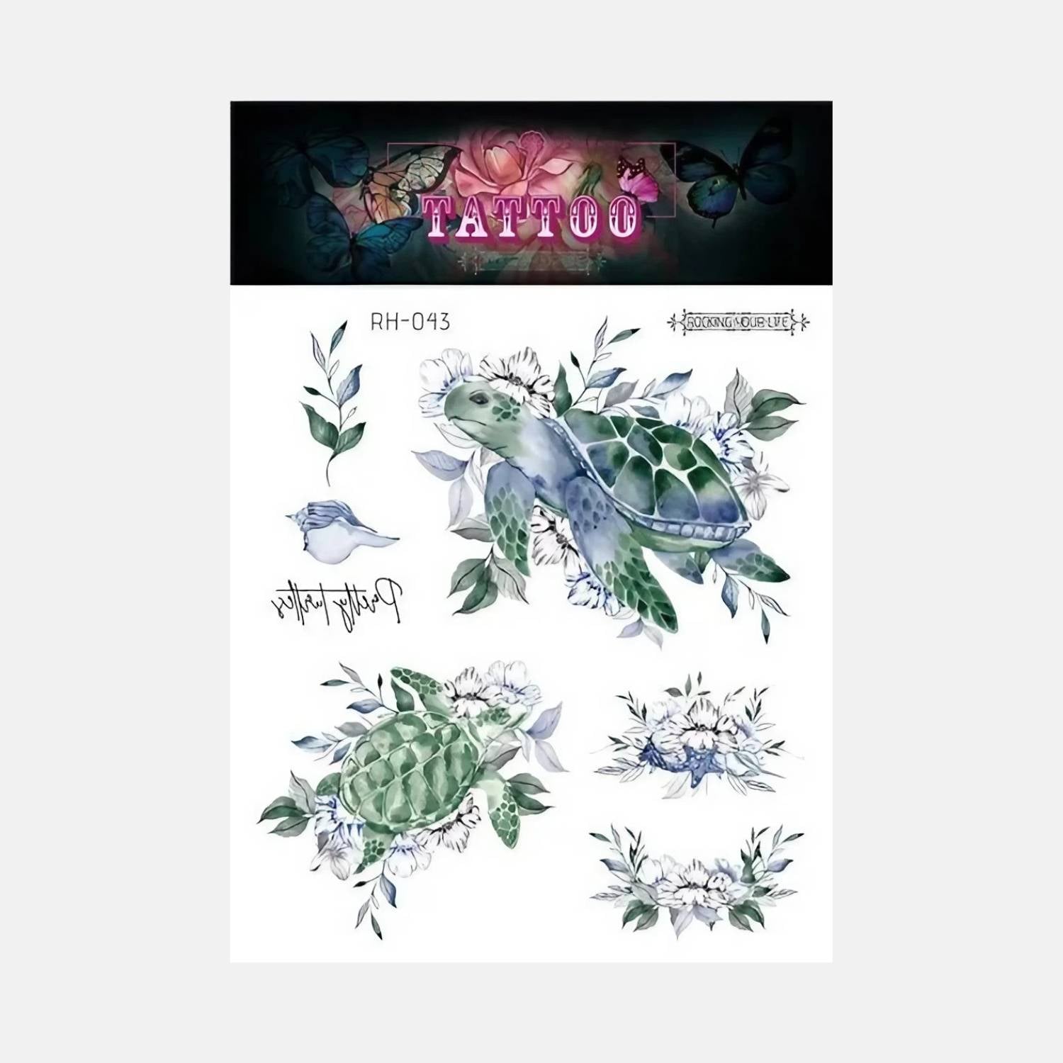 - Collection premium de 7 tatouages temporaires tortue au design minimaliste